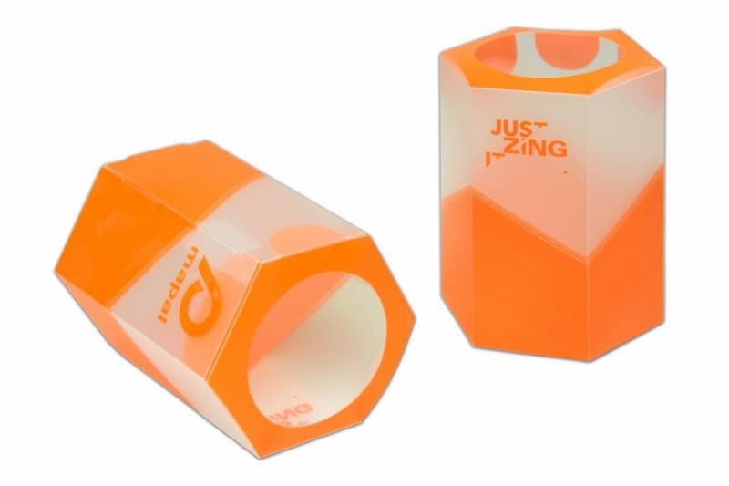 Opakowanie na długopisy, ołówki, drukowane na tworzywie sztucznym , pp grubości 0,4 mm, Lakier soft touch po całości, Klejenie pur