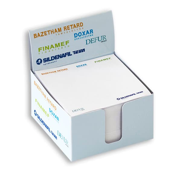 W ofercie posiadamy notesy klejone w bloczek, kartki wkładane do pudełka, bloczki wklejane w okładkę, bloczki kręcone, bloczki skośne w twardej oprawie, notesy w twardej oprawie, bloczki zapachowe czy bloczki typu Post-it.